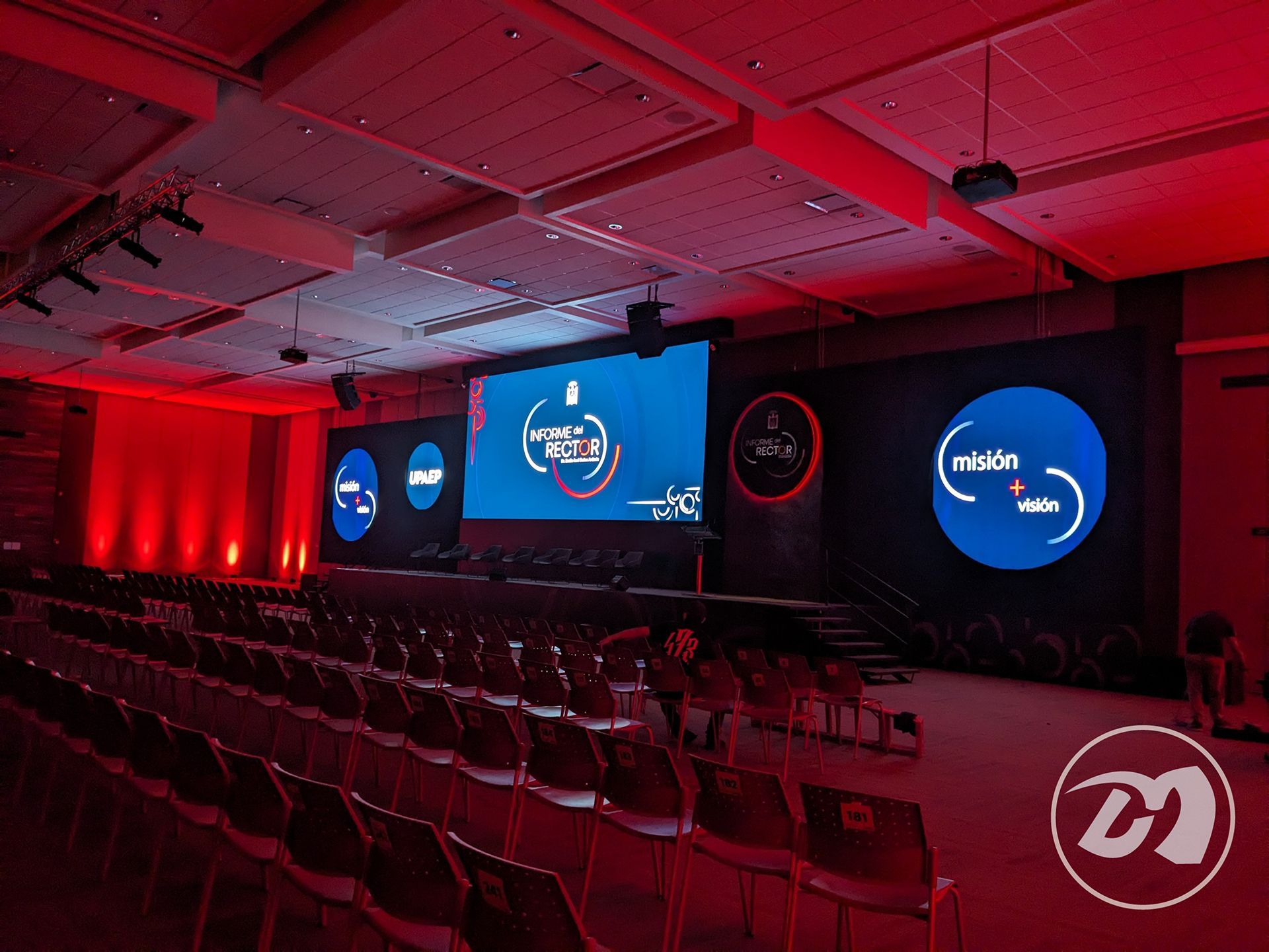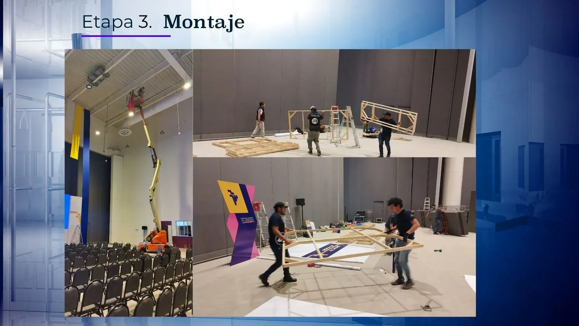 Además de stands, también creamos escenografía para eventos. Desde escenarios impresionantes hasta fondos temáticos, nuestra construcción de escenografía añade un toque especial a cualquier ocasión.